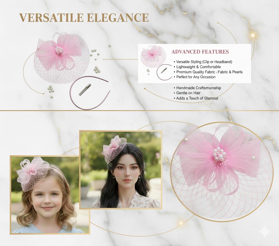 These hair clip with hair band and alligator clip party hats are made of fabric net and ribbon, lightweight and reliable, not easy to fade or deform, and can provide you with comfort and long term service.you can give these hair clip hat fascinators for women tea party to your family and partners on birthdays, Halloween, Thanksgiving and other occasions.These are suitable for various occasions, such as parties, birthdays, festivals, concerts, ceremonies, weddings, Halloween, Christmas, cocktail party.