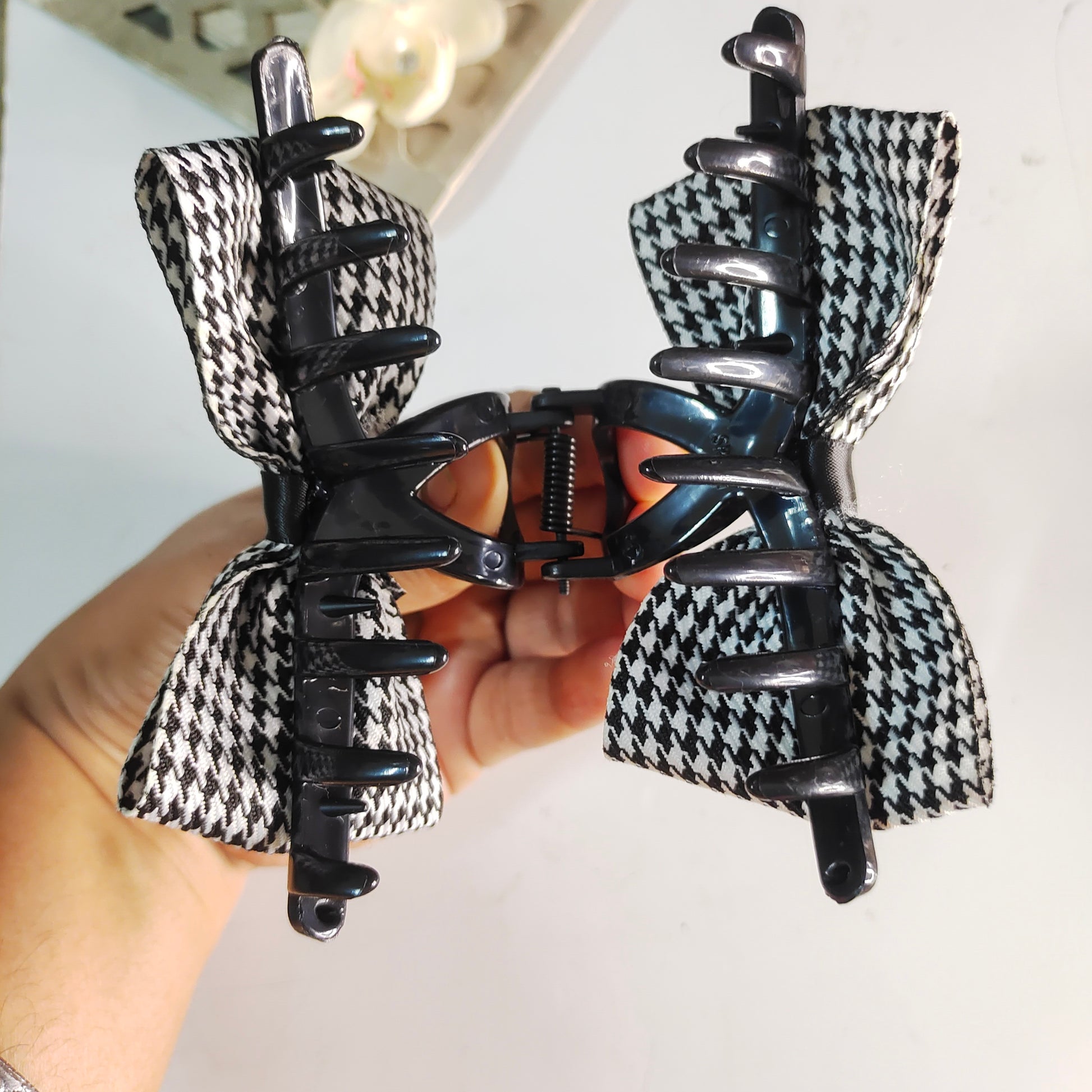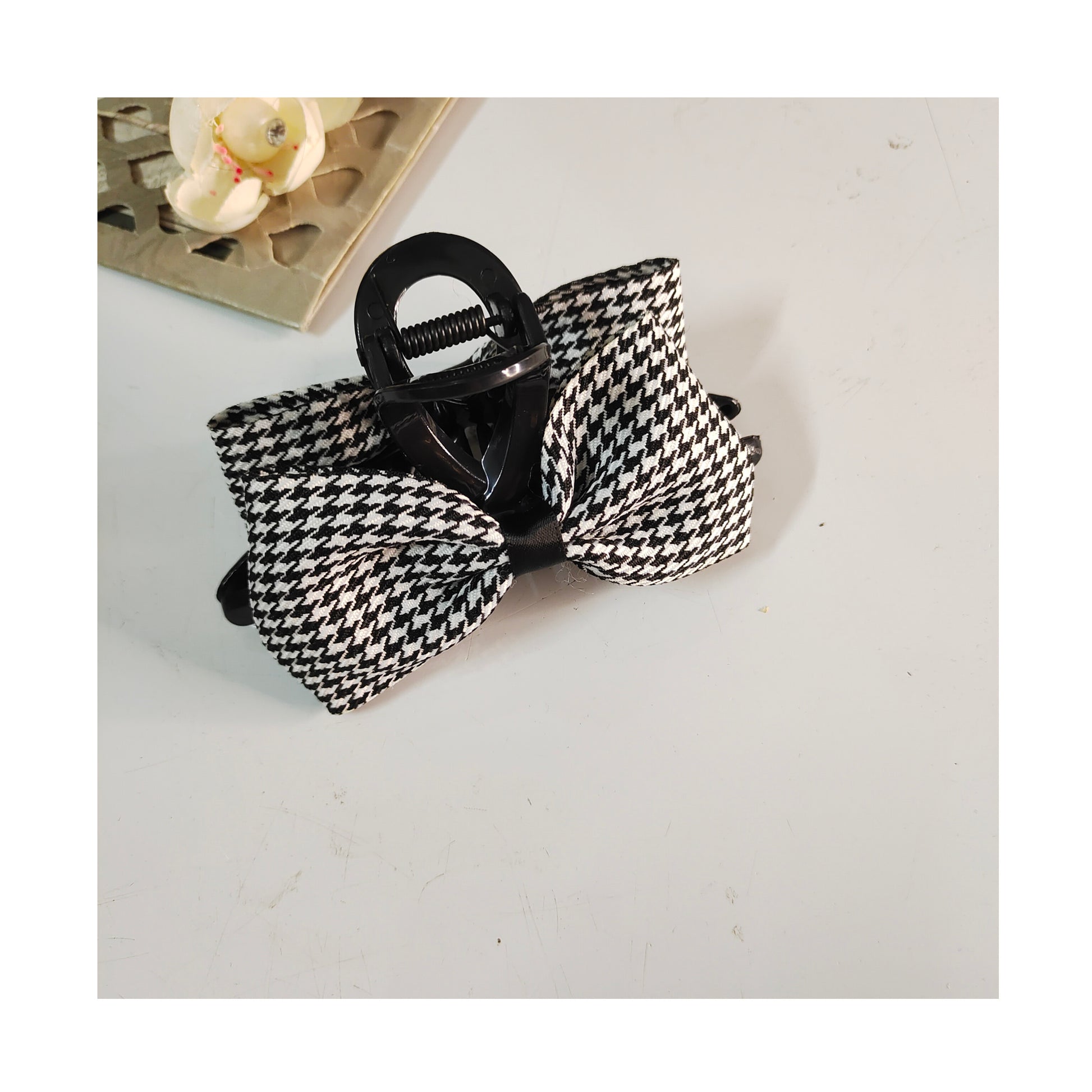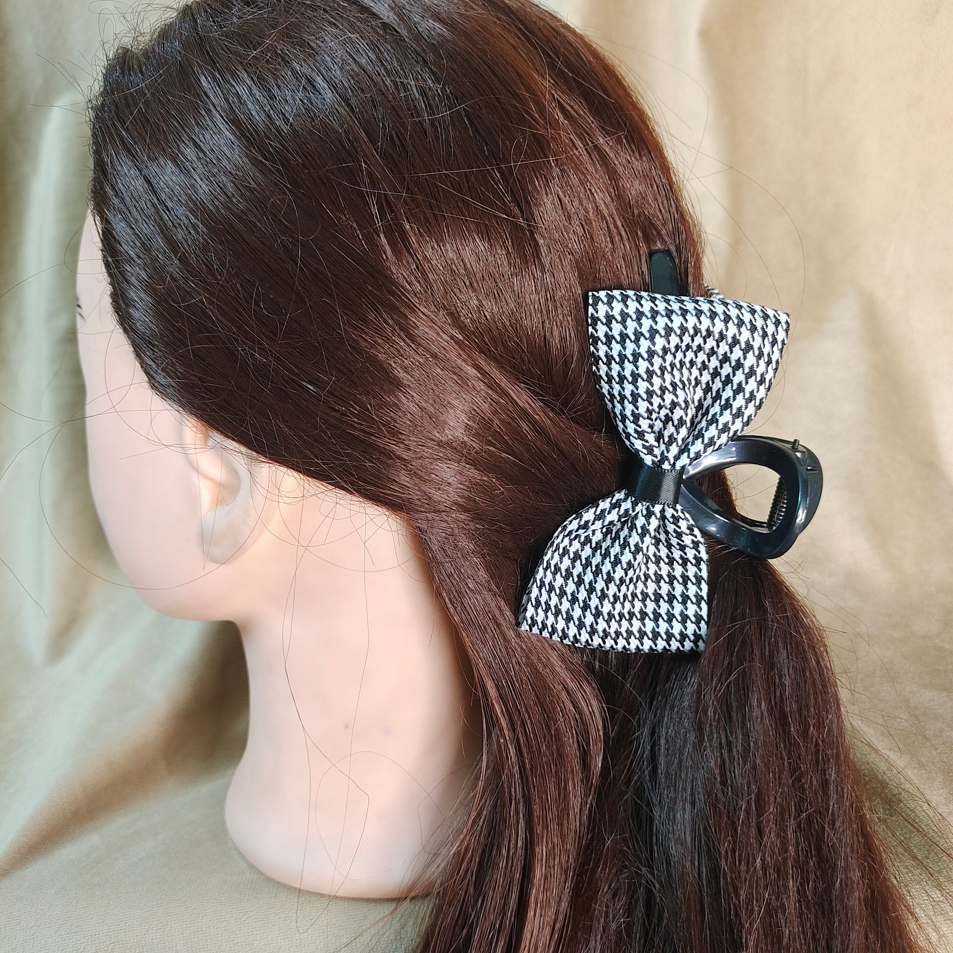 - STYLISH DESIGN: Elegant houndstooth pattern bow hair claw clip featuring a classicdesign with a glossy black centre clasp